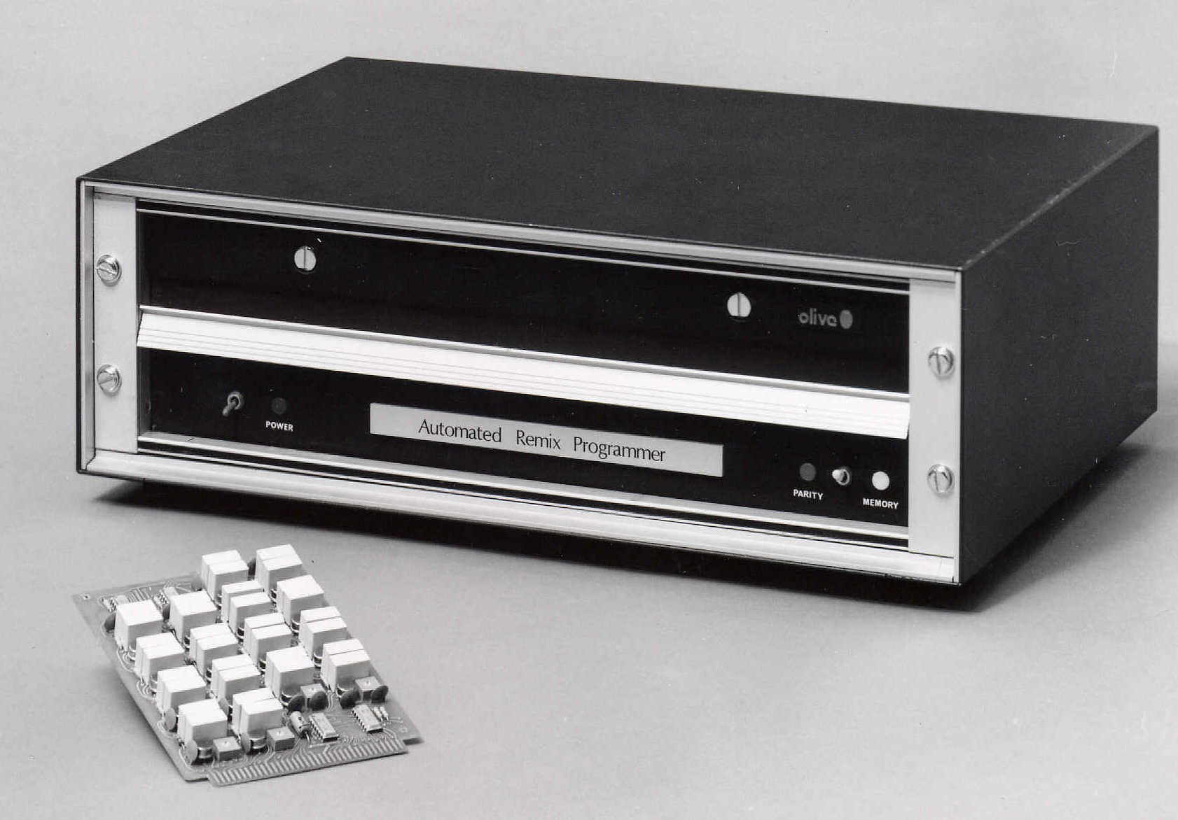 AutomationAt an early point in the development of the company, Jones wanted to offer the capability of automating the mixdown process. He had heard from engineers that this was one of the more challenging aspects of producing a master. Each time the mixdown was performed, some little flaw might show up. The mix was set up again, only to miss something else. Including VCAs provided the path for automating the mix downs. Olive contracted with a couple of engineers with converter and digital electronics skills to create a system that would monitor 16 or more DC voltages and produce an analog FSK (Frequency Shift Keying) signal that could be recorded on one track of the tape recorder. This could be played back with the rest of the audio tracks and the DC control levels would control the VCAs to automate the mix down. This was the first appearance of any sort of automated mixdown, years before Neve or API would be able to include the feature. Quentin Meek, then at Studio Six in Montreal, was loaned a prototype system, and installed it at the studio to use with a Wiegand console. The first album recorded with that system, and thus the first known album with automation, was in early 1972, for Darcy Draper.