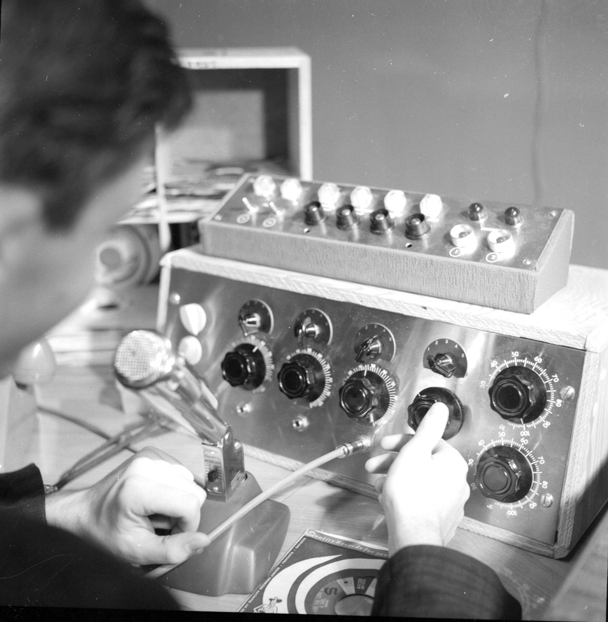 I had had an interest in electronics and in particular audio from an early age. I was fascinated by professional audio systems, recording studios, and broadcast studios and equipment. I had built a small audio mixer and tape recorder from scratch when I was 13 and enjoyed the learning experience building audio equipment. When I was 16 I managed to get a summer job at a local radio station, CFMB, where I built a production studio with a large U-shape enclosure integrating console, turntables, and tape recorders. A year later, I built a new radio production studio for a friend who was starting a voice-over and commercial development business. I was fortunate to land a better job in the engineering department in a larger radio station, CKGM, that had the most listened to program every evening, an "Open-Line" program where listeners could call in to discuss topics on a wide range of subjects. Since this meant anyone could say wherever they wanted live on air, we had to develop a short delay system to allow deletion of unforeseen inappropriate material before it was broadcast. Also the simple office telephone system that was being used was not adequate to handle the volume of calls or allow the technical staff to vet callers before they were on the air with the host. So I developed a telephone system, telephone to broadcast interconnection interface, sophisticated user interface and control panels, and the several second audio delay system. I wrote an article for a national broadcast magazine which was published in January 1967 here. Later at collage, I built a sound system for the auditorium, building the control console using commercial mixers and a custom panel integrating VU meters and several signal routing levers. Then a classmate, Bryan Rawlings, and I founded the college radio station in 1963 and I designed and built a radio broadcast console and auxiliary equipment for this new radio station.